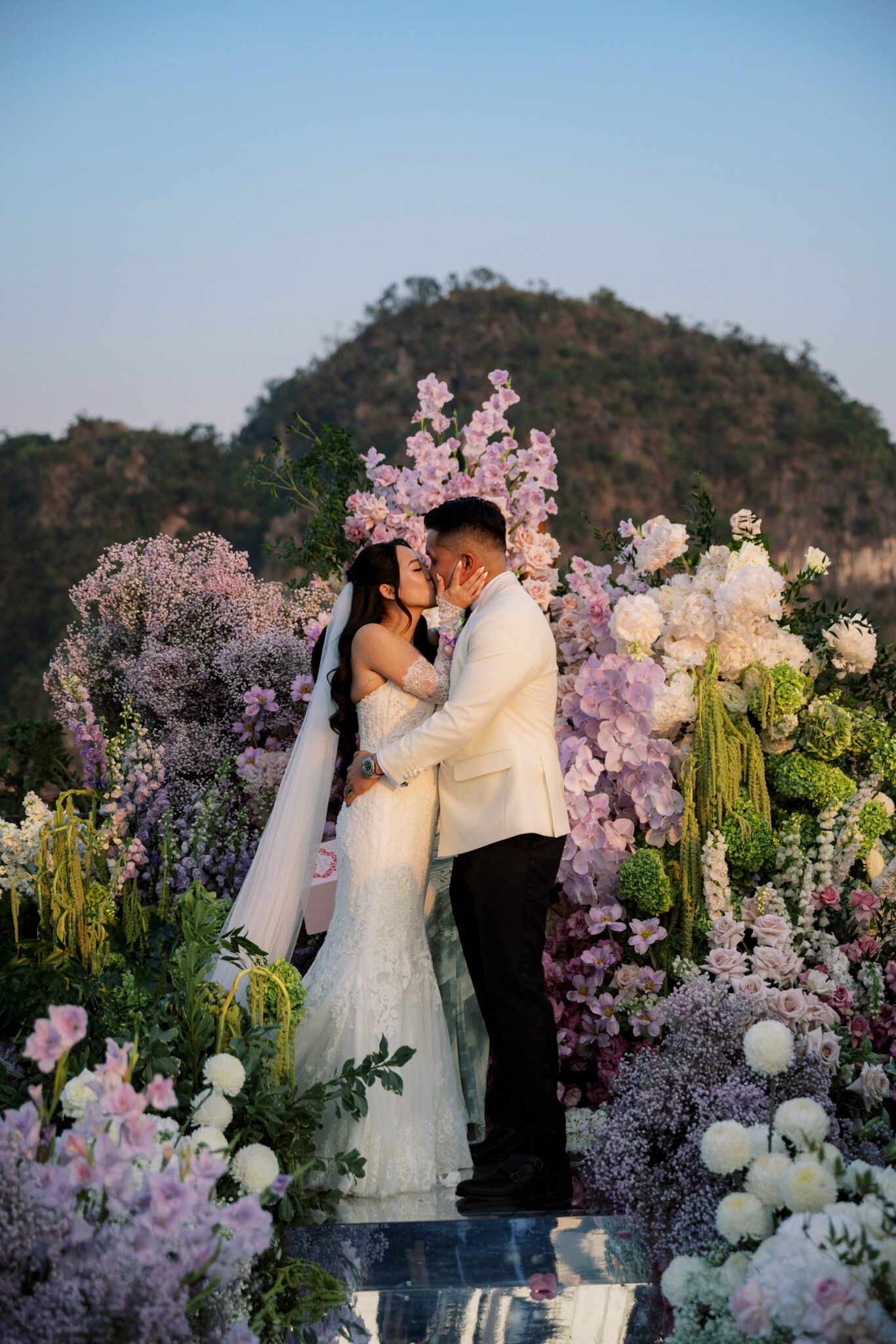 A cruise wedding sets against the gorgeous sunset of Lan Hạ Bay Tam and Hubert had always longed for a dreamy cruise wedding in the