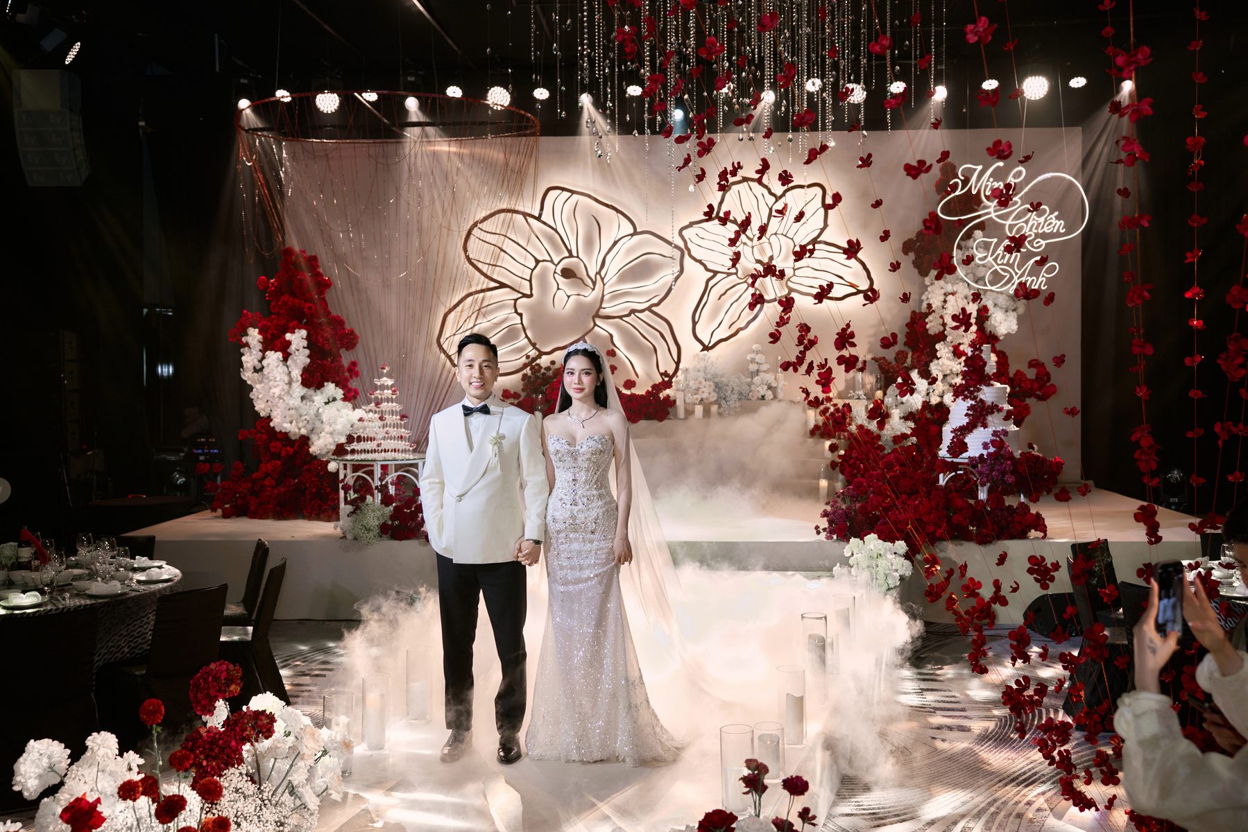 PinIf there was a color symbolizing love, red would be the undisputed number one choice. For Kim Anh and Chien’s ballroom wedding in Hanoi, the story was no different as red was elevated into being a charismatic palette of love.